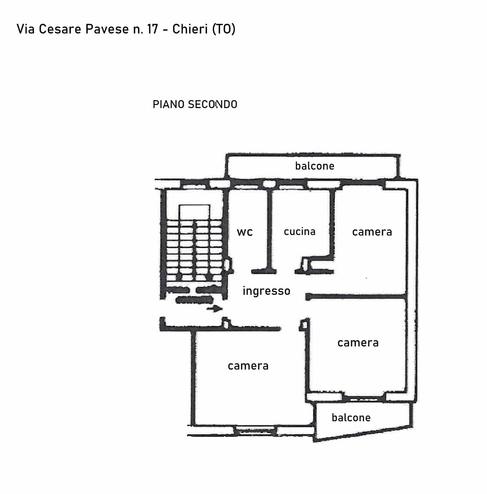 Chieri – Via Cesare Pavese/Via Conte Rossi di Montelera, in posizione molto comoda ai principali servizi e ai mezzi pubblici, a pochi minuti dal centro commerciale il Gialdo/Ipercoop e dal centro storico, in piccola palazzina composta da quattro unità abitative, proponiamo in vendita appartamento da ristrutturare posto al secondo ed ultimo piano, così composto: ingresso con corridoio di disimpegno, tre camere di cui due dotate di un balcone ciascuna, cucina e bagno.
