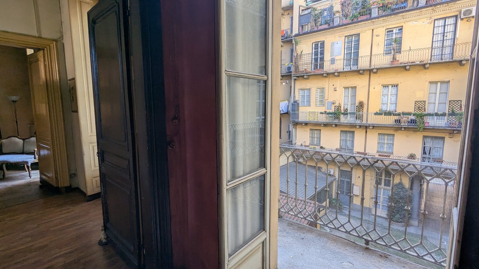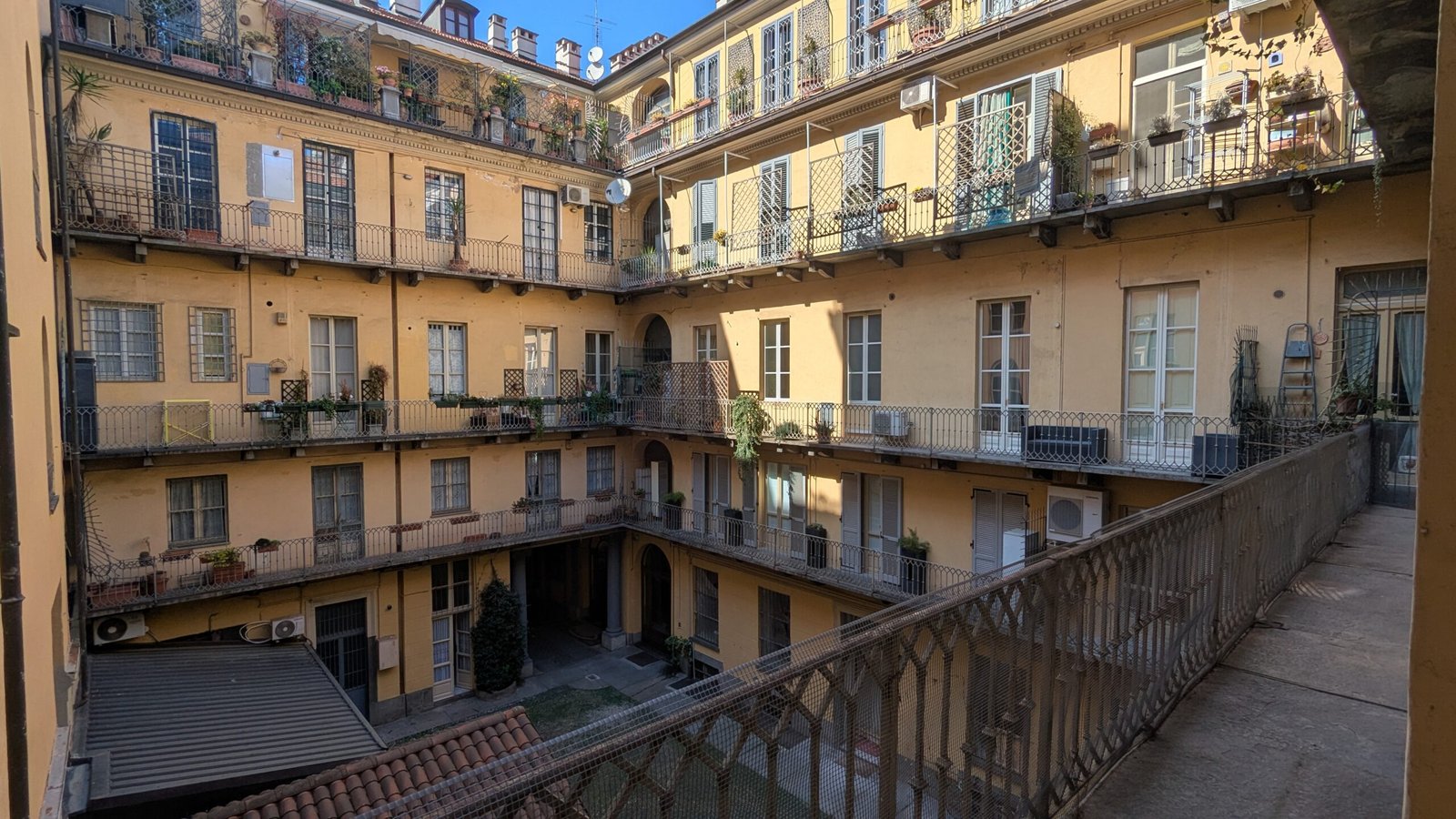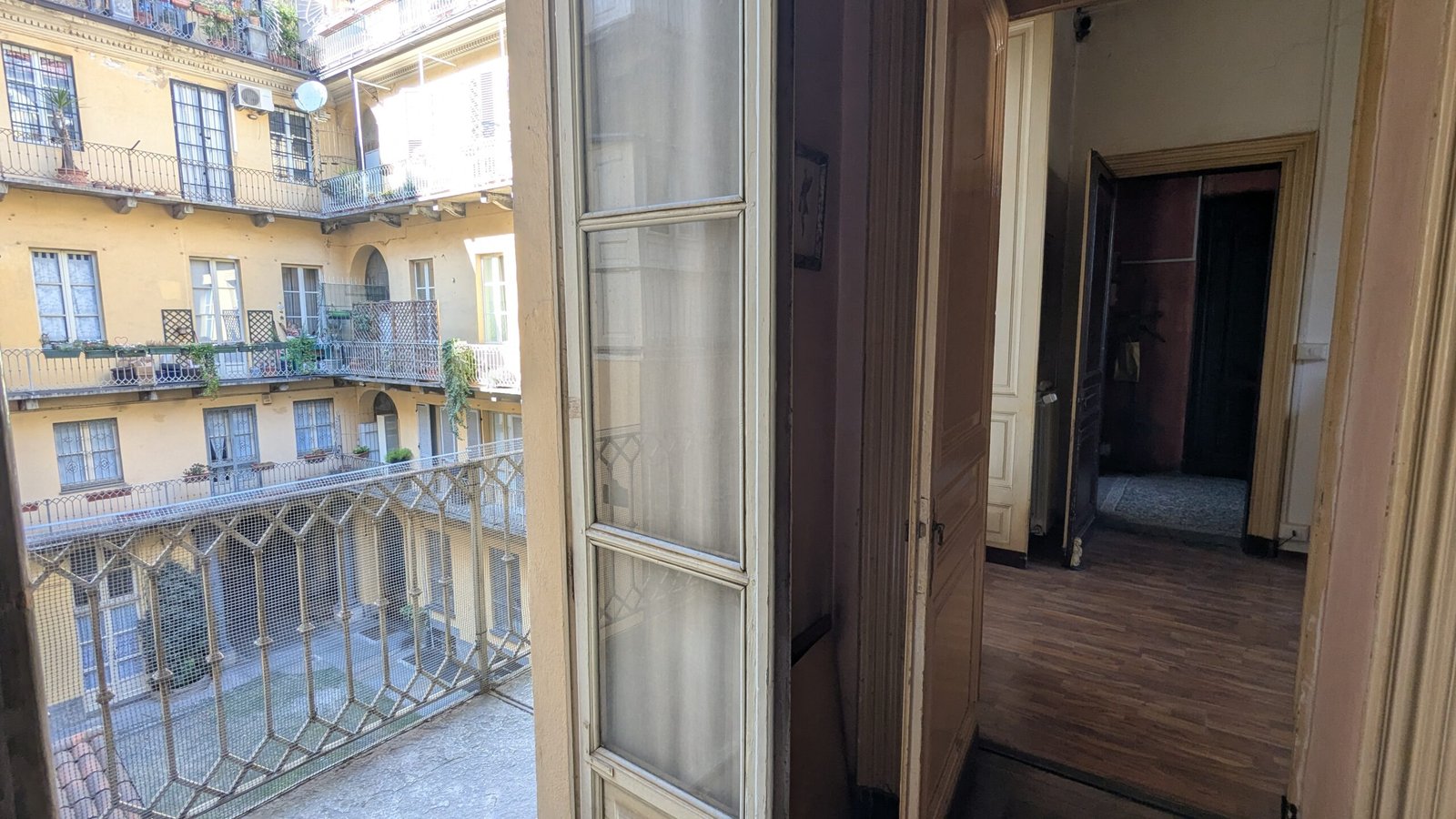 L’immobile si trova al secondo piano con ascensore e gode di doppia esposizione, elemento che garantisce una piacevole luminosità durante tutta la giornata. Uno dei suoi punti di forza è il lungo balcone privato con affaccio sul tranquillo cortile interno, un’oasi di silenzio e riservatezza nel pieno centro cittadino.