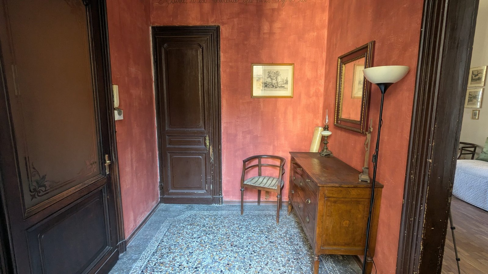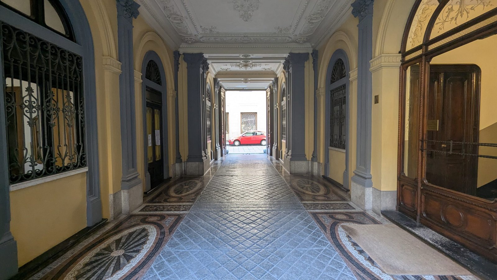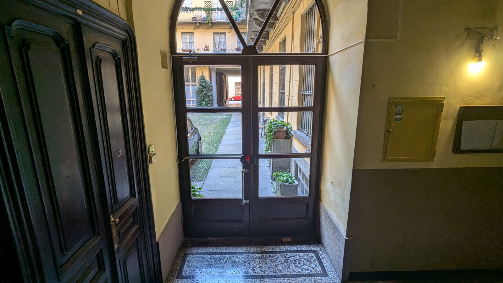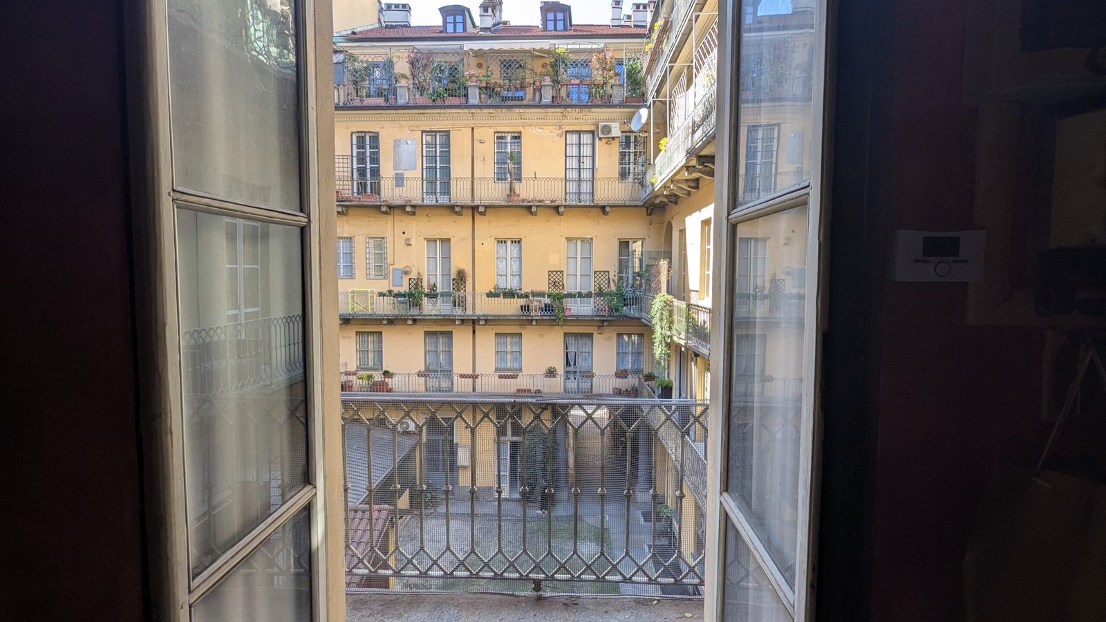 L’immobile si trova al secondo piano con ascensore e gode di doppia esposizione, elemento che garantisce una piacevole luminosità durante tutta la giornata. Uno dei suoi punti di forza è il lungo balcone privato con affaccio sul tranquillo cortile interno, un’oasi di silenzio e riservatezza nel pieno centro cittadino.
