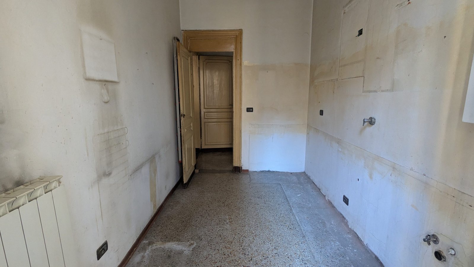 Attualmente l’appartamento risulta completamente da ristrutturare, rappresentando così un’opportunità unica per chi desidera progettare e personalizzare ogni ambiente secondo il proprio gusto e le proprie esigenze ripristinando affascinanti elementi originali, come i pavimenti in parquet e la caratteristica bussola d’ingresso.
